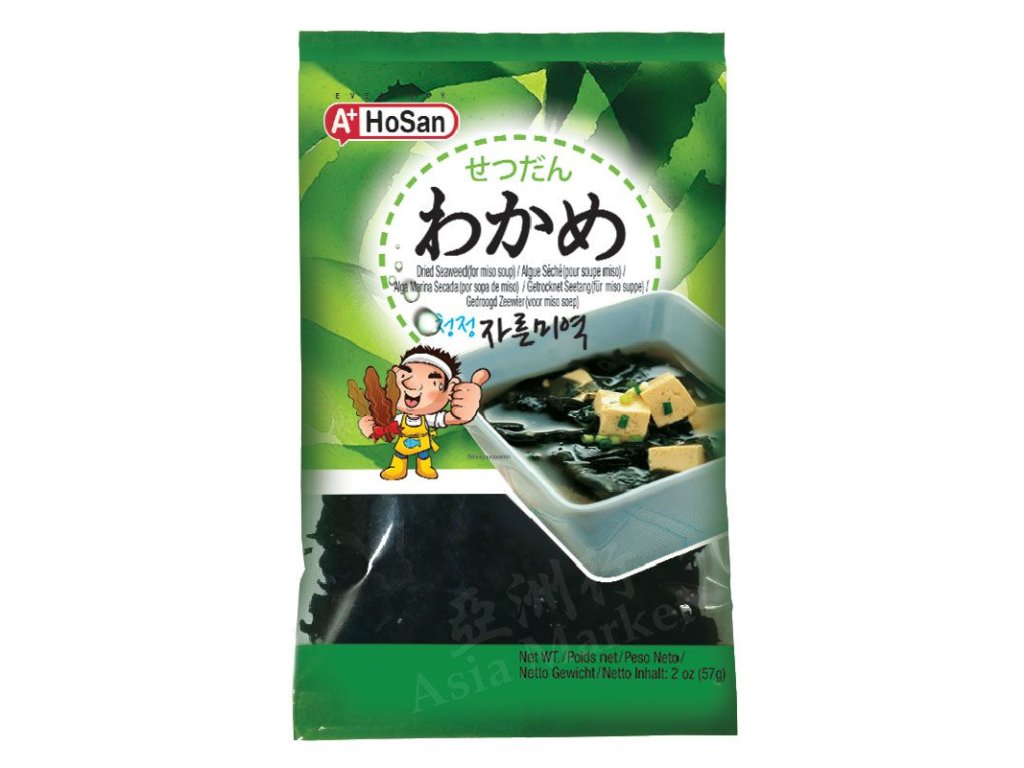 Sušené mořské řasy wakame ve formě sušených listů. Tato oblíbená řasa je používána v asijské kuchyni pro svou vynikající chuť a vysoký obsah minerálů a stopových prvků. Wakame se často používá jako přísada do polévek, salátů nebo jako doplněk k dalším jídlům.